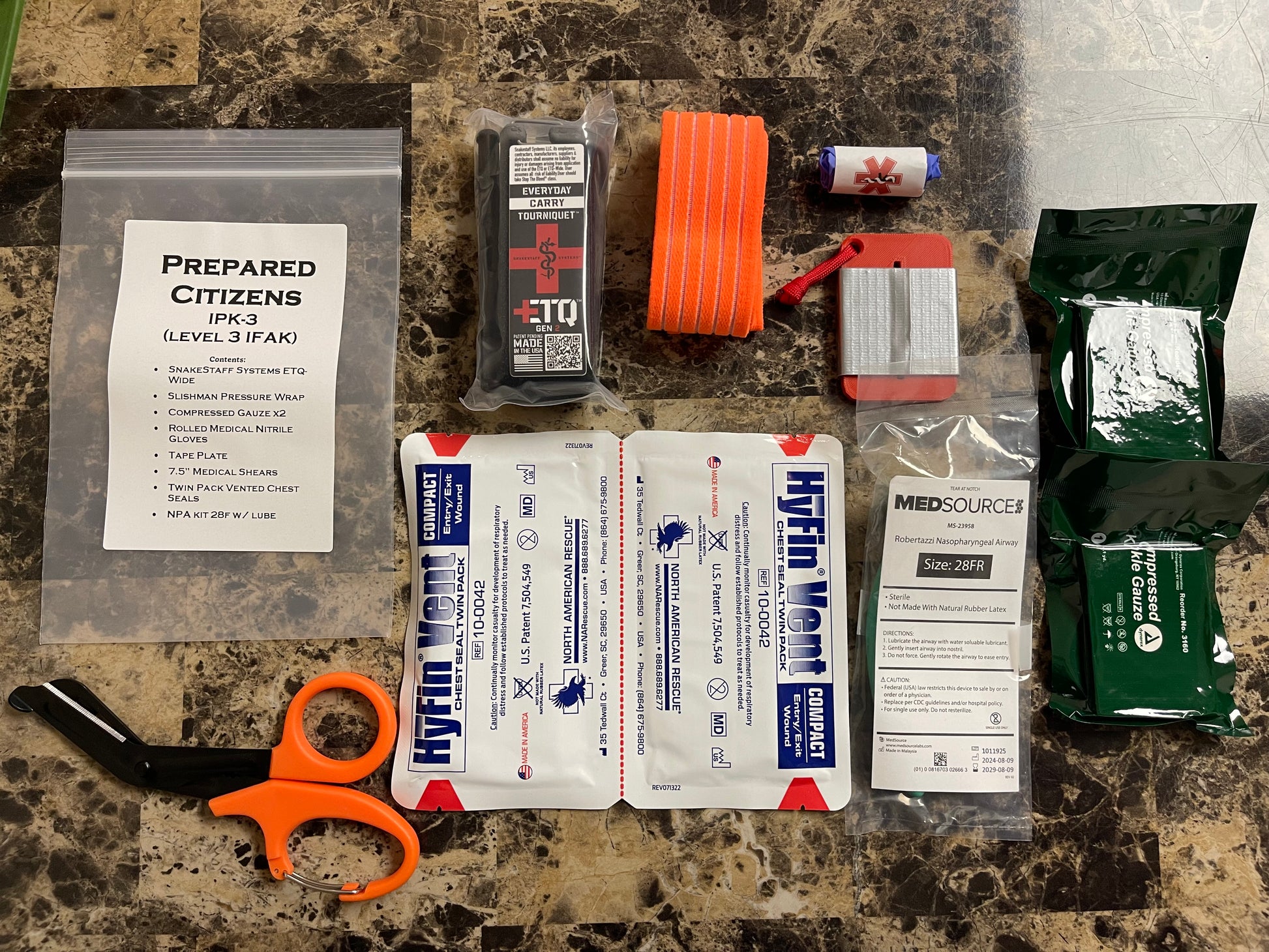***Kits are assembled with premium brands such as: SnakeStaff Systems, SAM Medical, North American Rescue, MEDTAC, Everyday First Aid, MED Source, and more! In some cases other brands may be used due to availability, but rest assured that quality will never be sacrificed at Prepared Citizens Training Group.***