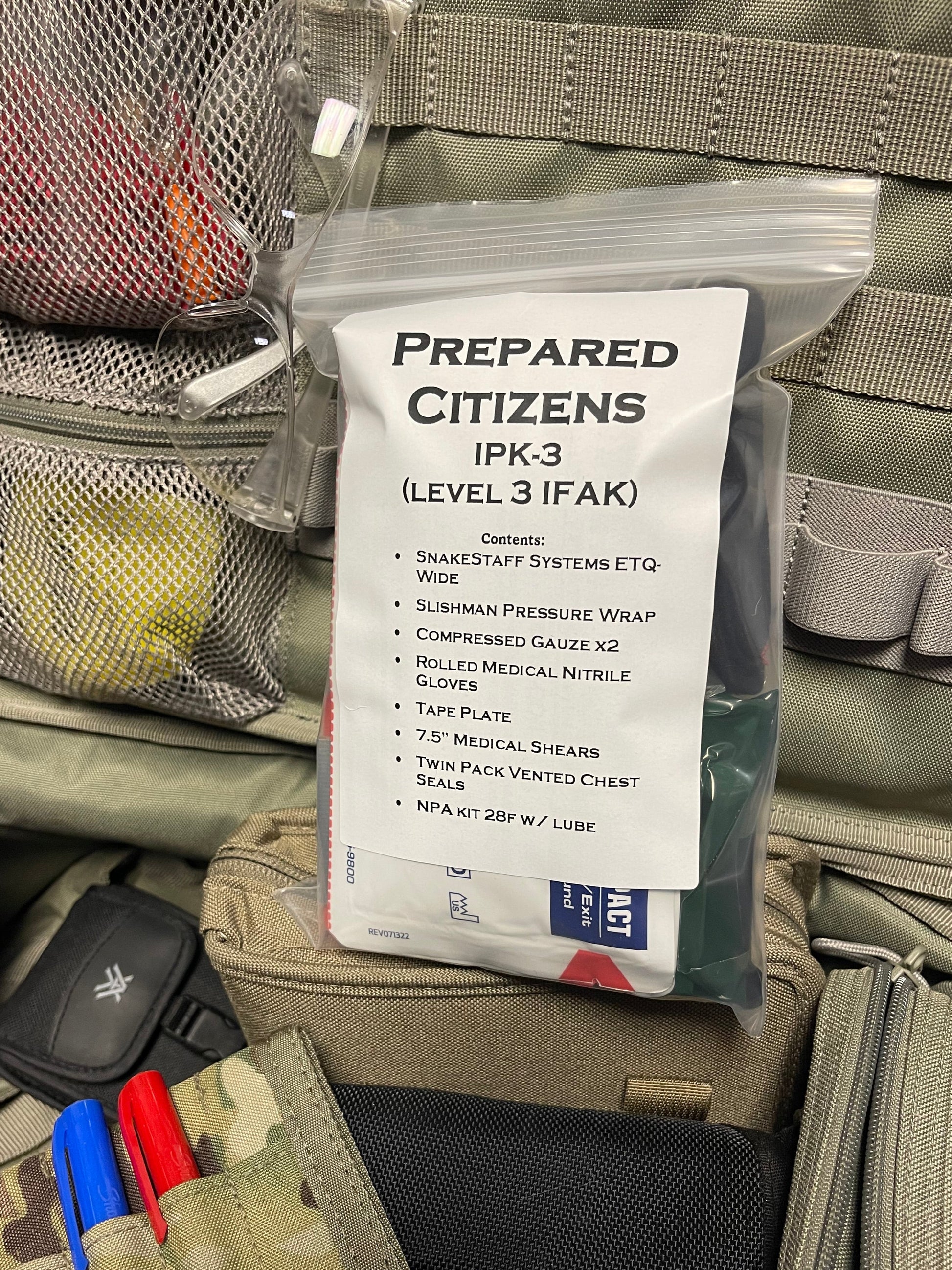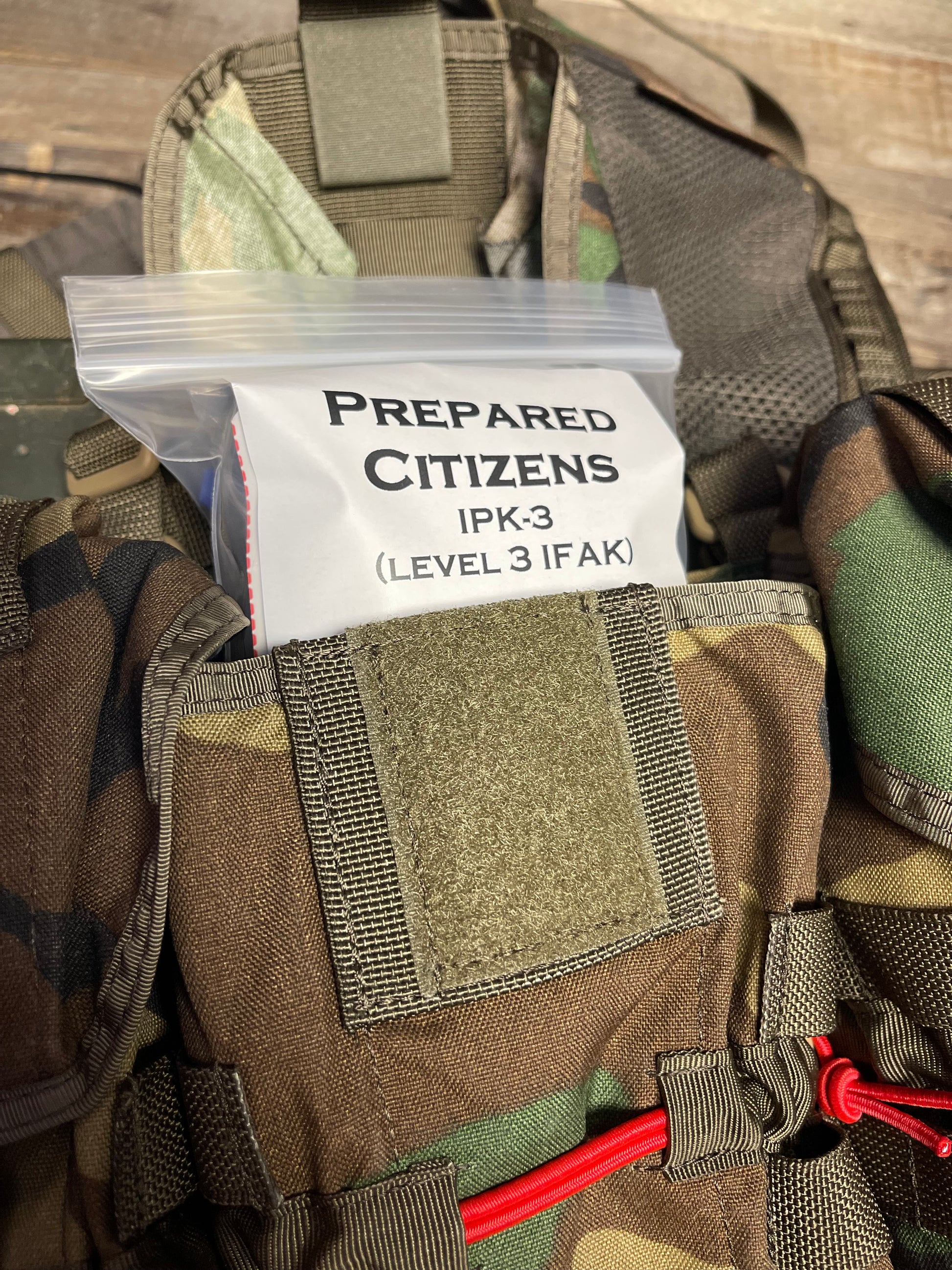 The IPK-3 (Individual Patrol Kit, level 3 IFAK) is a professionally assembled trauma kit, built in the USA by an Army Infantry Veteran. It features advanced bleeding control capabilities, comprehensive treatment supplies for gunshot wounds, and essential tools for airway control. Designed for tactical operators, prepared citizens, and first responders, this kit ensures effective critical care in high-stress emergency scenarios.